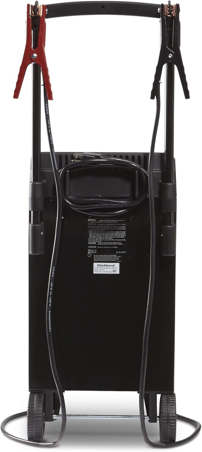 - Includes 6-gauge, 6′ power cord and 6′ cold weather flexible output cables with color-coded clamps