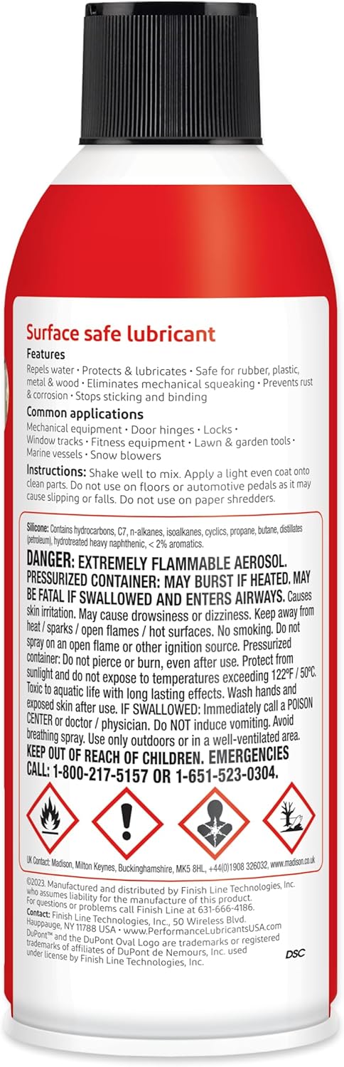 - DuPont Silicone Surface Safe Lubricant with Non-Stick Ceramic Technology, reduces friction, prevents parts sticking, and stops squeaks. It is safe for use on all surfaces including non-metal materials that can become damaged by conventional lubricants.