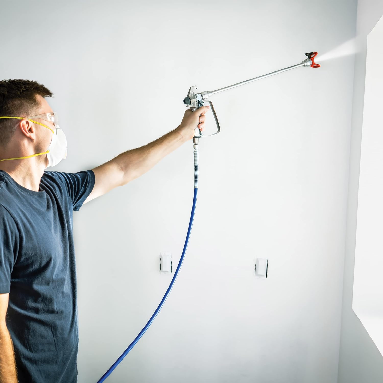 - Spray high, low or recessed areas like ceilings, stairways, soffits, high walls, overhangs or decks reducing the need for ladders or stepstools