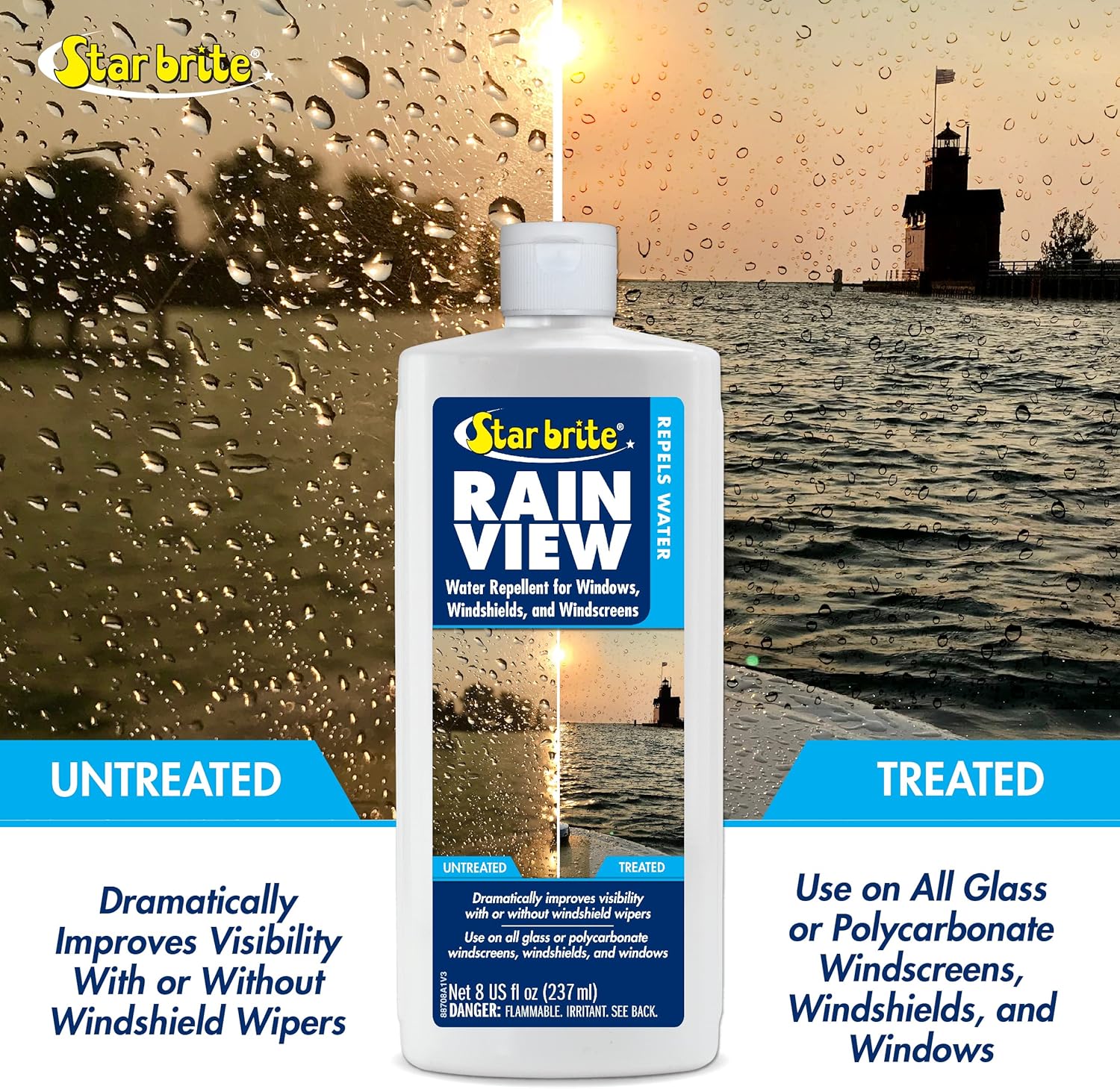 - LONG-LASTING RAIN REPELLENCY – Star Brite Rain View creates a slick surface that allows rain to slide off windshields and windows easily, providing long-lasting visibility even in heavy rain