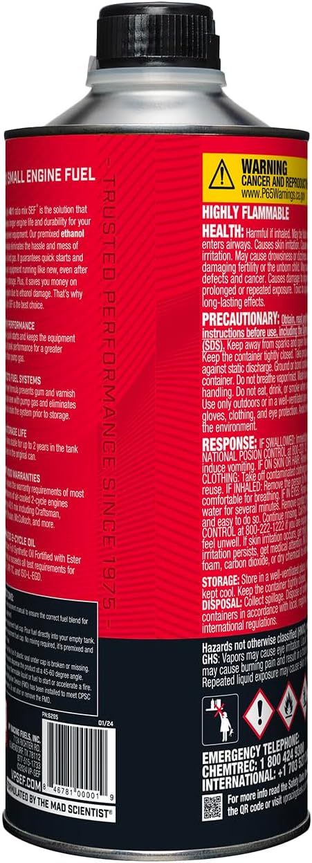 - Ethanol-free – prevents ethanol-related corrosion problems