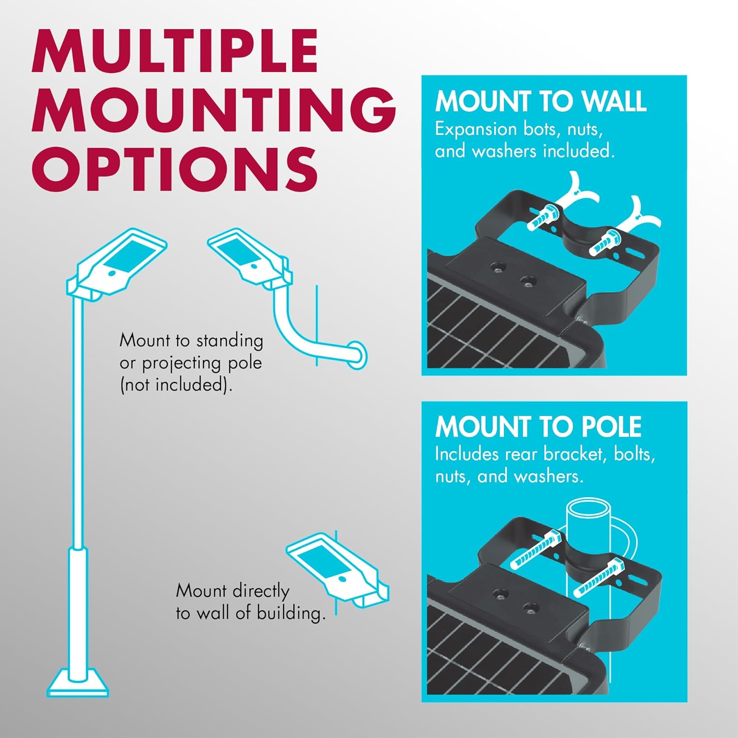 - EASY TO INSTALL: simply mount it to any hard surface (fence, pole, wall, and tree) under direct sunlight and turns on to provide light anywhere you need it